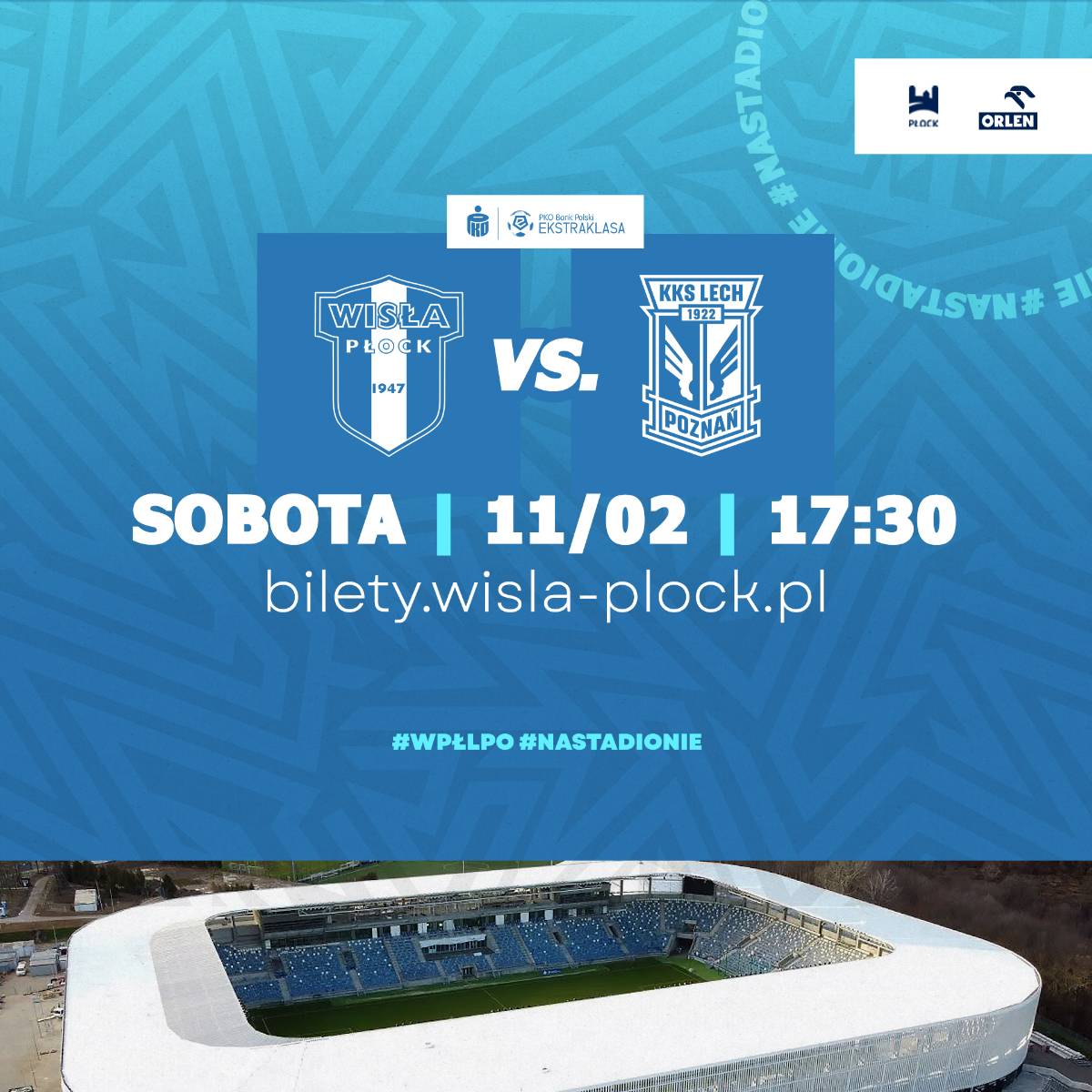 W sobotę 11 lutego o godzinie 17:30 Nafciarze podejmą na Stadionie im. Kazimierza Górskiego Lech Poznań w ramach 20. kolejki PKO Bank Polski Ekstraklasy. Bilety do kupienia na stronie bilety.wisla-plock.pl lub w punktach Wisła Płock FanShop w ORLEN Arenie i Galerii Mazovia.