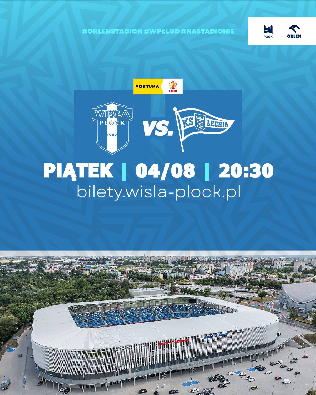 Już wkrótce drużyna trenera Marka Saganowskiego zagra na własnym obiekcie z Lechią Gdańsk w ramach 3. kolejki rozgrywek Fortuna 1. Ligi. Pierwszy domowy mecz w tym sezonie zaplanowano na piątek 4 sierpnia na godzinę 20:30. Bilety, pakiety i karnety do nabycia przez internet na stronie bilety.wisla-plock.pl lub stacjonarnie w Wisła Płock FanShop w Galerii MAZOVIA, a po zakończeniu przeprowadzki będzie je można nabyć także w Wisła Płock FanShop na ORLEN Stadionie.